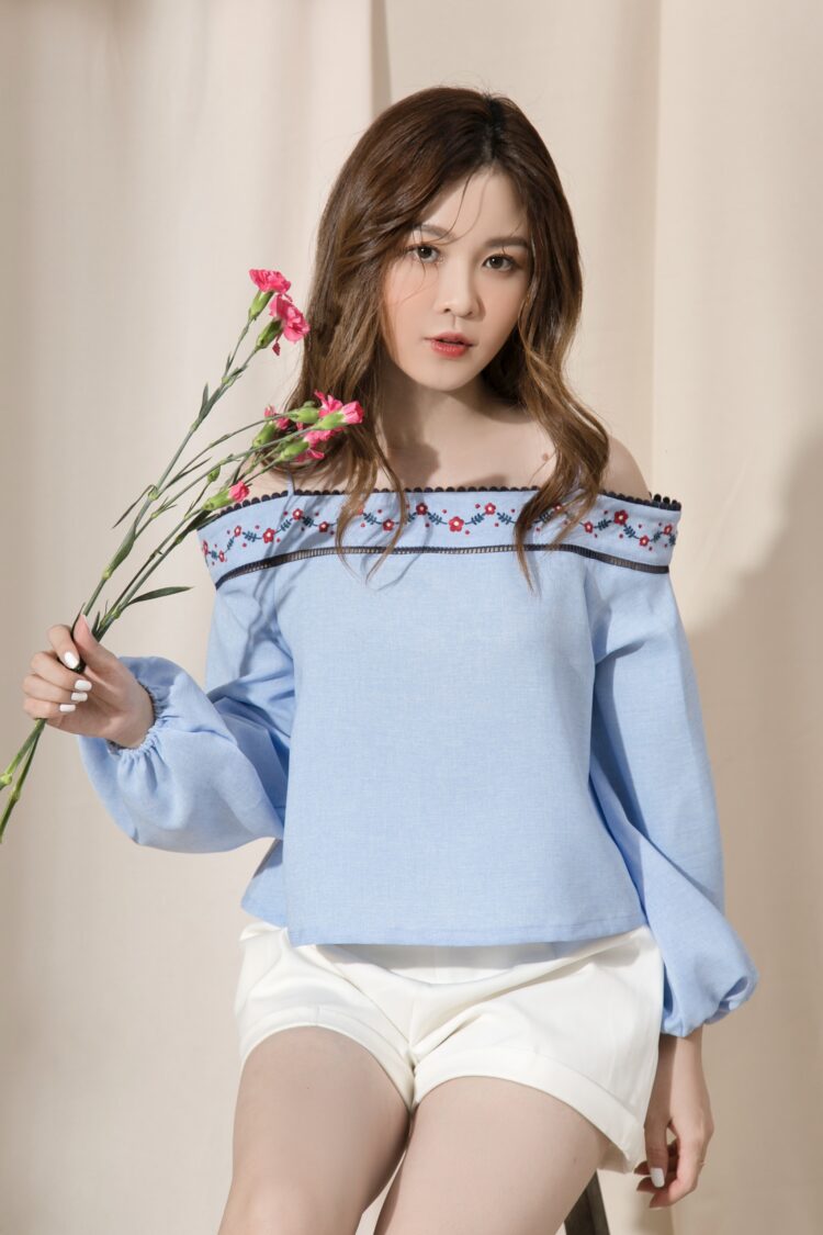 • Chia sẻ qua viber bài: Áo croptop bẹt vai 2 dây viền ren thang xanh đen thêu nhánh hoa quanh vòng vai, tay phồng dài