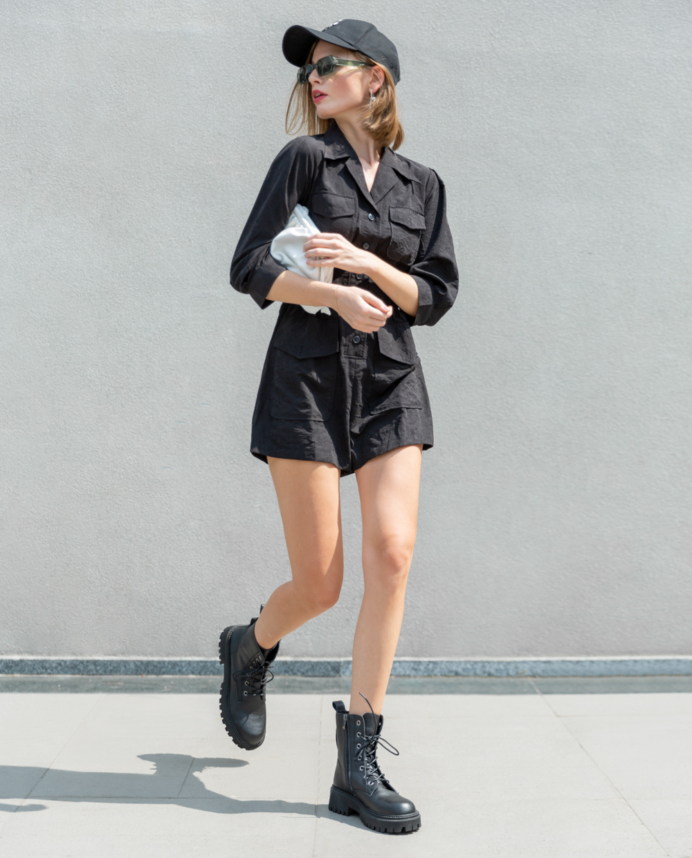 Jumpsuit tay lở - Đen