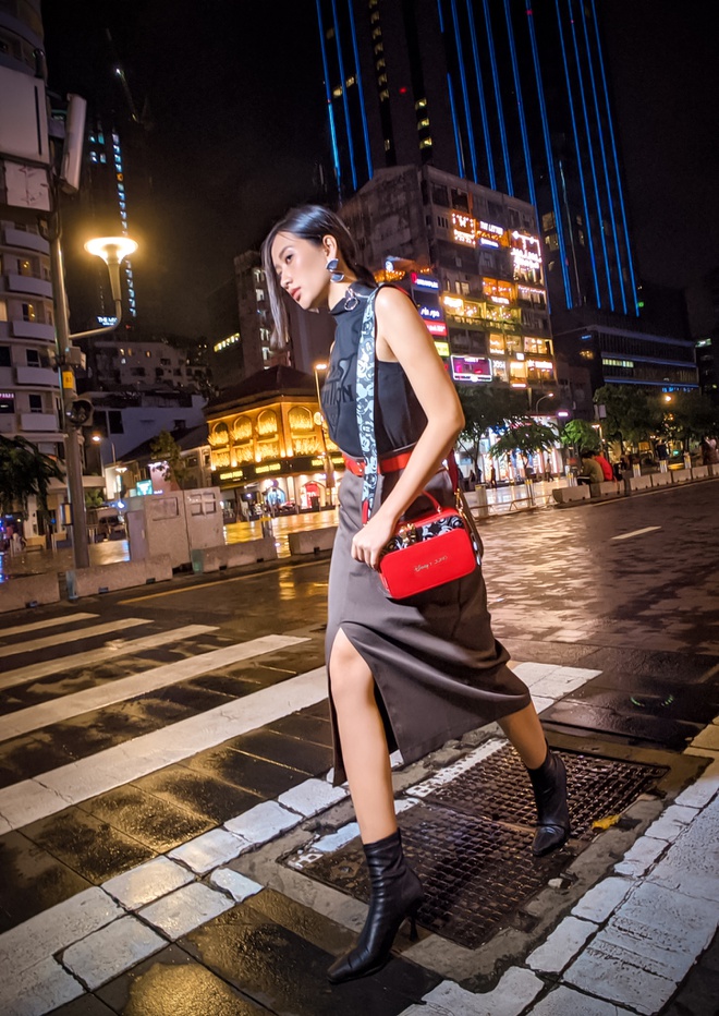 Trong khi phần lớn bạn nữ chọn trang phục trẻ trung như quần jeans để phối cùng snapshot, nhiều nàng chọn cách mix&match cao tay hơn, kết hợp 2 phong cách công sở và đi tiệc với chân váy lụa bắt trend, boots da cổ thấp hiện đại để phối với túi.